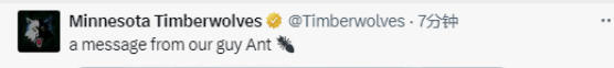 爱德华兹说道:“大伙儿好!很抱歉今天的比赛我没法出场,但真的特别感谢你们赶来支持我。我会尽快回归的,兄弟们!所以请继续来现场为球队加油,今天咱们就一起拿下这场比赛!”