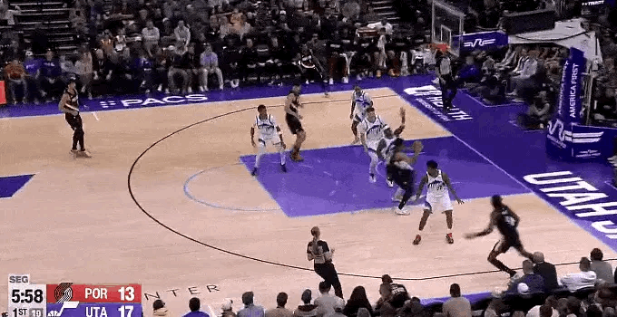 本场比赛,杨瀚森依然是作为替补登场,他在首节结束前6分12秒登场。虽然上场后杨瀚森被凯斯勒在身上打成了1次2+1,但下个回合他马上给出回应,接到卡马拉的妙传,与凯斯勒发生身体对抗后篮下勾手命中。