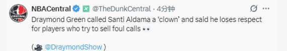 此前,格林在对阵灰熊队的比赛中对阿尔达马恶意犯规,并在后者两罚不中后还跳起来嘲讽。