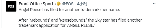 2025-10-31 07:50北京时间10月31日,WNBA球员安吉尔-里斯将自己的名字注册为商标。