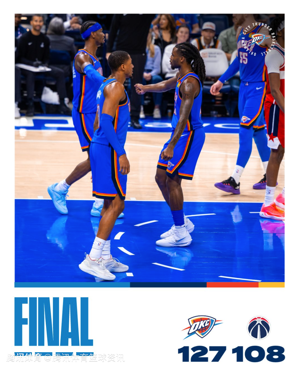 2025-10-31 10:50北京时间10月31日,NBA常规赛,雷霆主场以127-108力克奇才,豪取开赛6连胜。