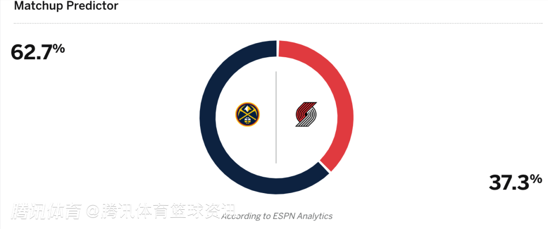 掘金62.7%,开拓者37.3%