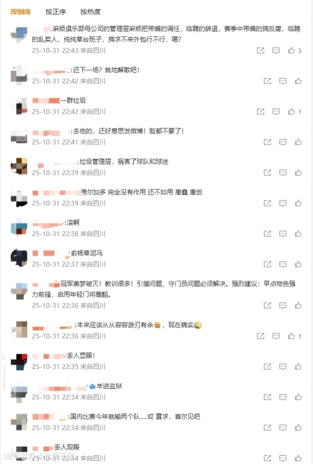 退出争冠后蓉城官微致歉 仍遭爆破:丢人!管理层坏事做绝+该进监狱