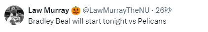 比尔重回首发出战鹈鹕 此前因下背部酸痛连续缺席2场比赛
