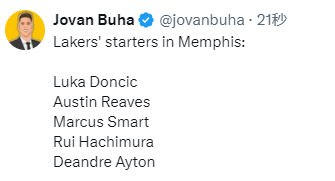 湖人vs灰熊首发出炉:东契奇复出携手里夫斯双核带队 斯马特在列