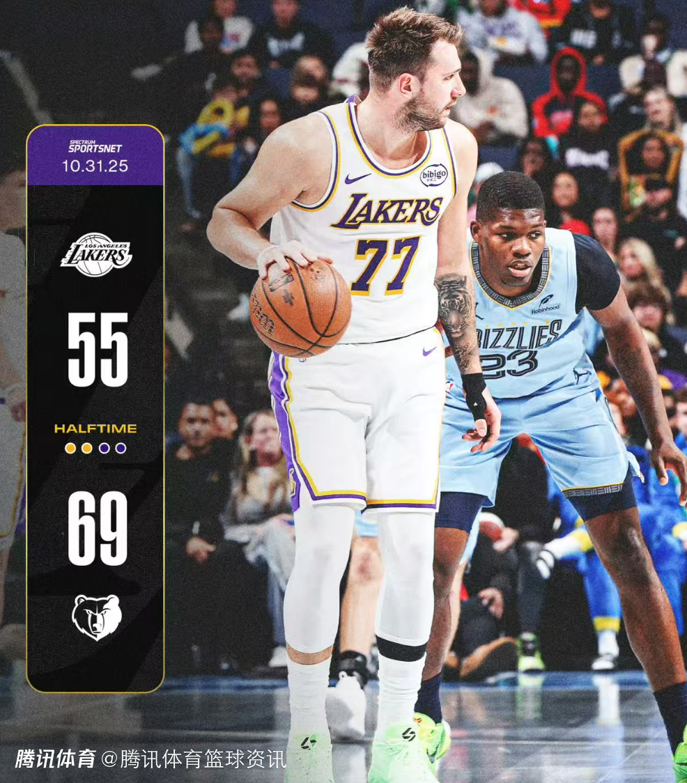 上半场战罢,湖人以55-69落后,虽然首节湖人一度以31-27领先,但在次节灰熊单节打了一个42-24,将比分反超。