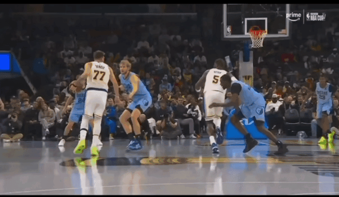 2025-11-01 11:10北京时间11月1日,NBA杯小组赛,湖人对阵灰熊,在湖人的一次进攻回合中,东契奇变向撤步晃趴文斯-威廉姆斯,后者被东契奇这个动作晃得直接丢掉了鞋子。