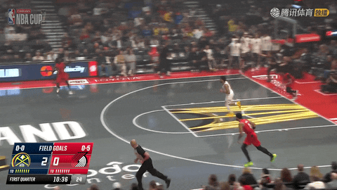 第1节还剩10分36秒时,掘金的穆雷接到布劳恩妙传,快下完成跑动扣篮,打破僵局,掘金2-0领先。