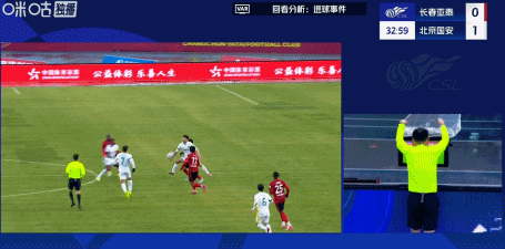 第32分钟,王刚底线附近横传,杨立瑜门前捅射得手,但VAR介入进攻过程中曹永竞手球在先进球无效,亚泰逃过一劫。