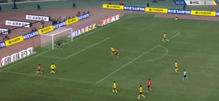 第54分钟,范厚泰半单刀杀入禁区,赵东旭出击救险,将他的推射扑出底线。