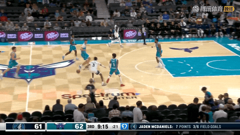 随着兰德尔在第1节还剩7分17秒时命中三分,森林狼把比分拉开到13-6,迫使黄蜂请求暂停。