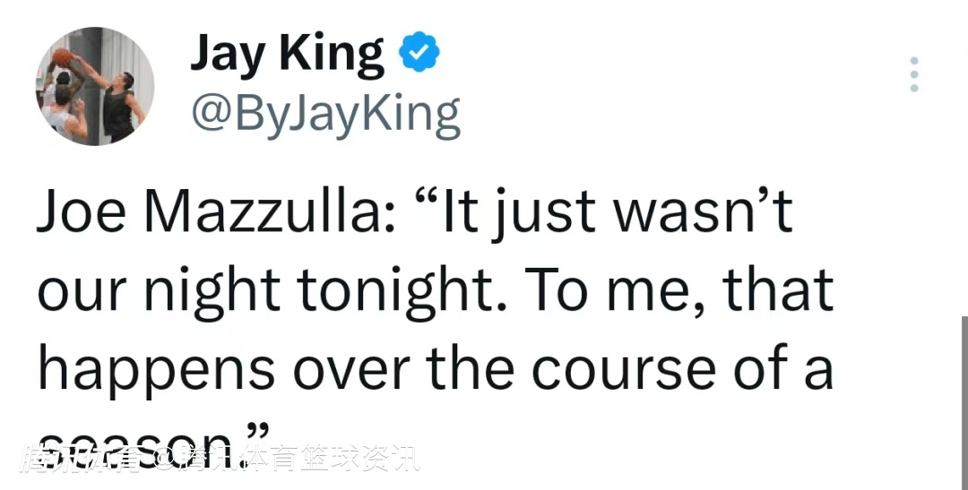 马祖拉并未将失利归咎于赛程安排,即便火箭队的阵容天赋更胜一筹。但事实上,本场比赛是凯尔特人队在9天内的第6场比赛,同时也是背靠背赛程的第二场。“今晚显然不是我们的幸运之夜。在我看来,这种情况在整个赛季中难免会发生。”