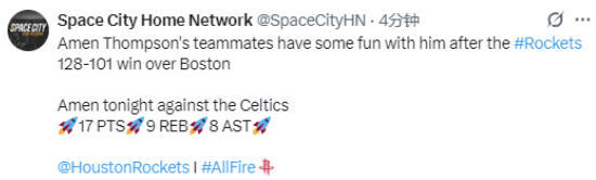 2025-11-02 12:30北京时间11月2日,NBA常规赛继续进行,火箭队128-101大胜凯尔特人队。阿门-汤普森此役得到17分9篮板8助攻,在场正负值+27。赛后,阿门接受媒体采访,点评比赛。