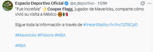 本场比赛在墨西哥城举行,弗拉格在谈到在墨西哥城打比赛的感受时说道:“是啊,我觉得这次经历真的太棒了。能在这样的赛场打球,见识一些新鲜事物,感觉特别好。而且现场观众太热情了,不管是对我们队,还是对对手队,氛围都特别棒。没错。”