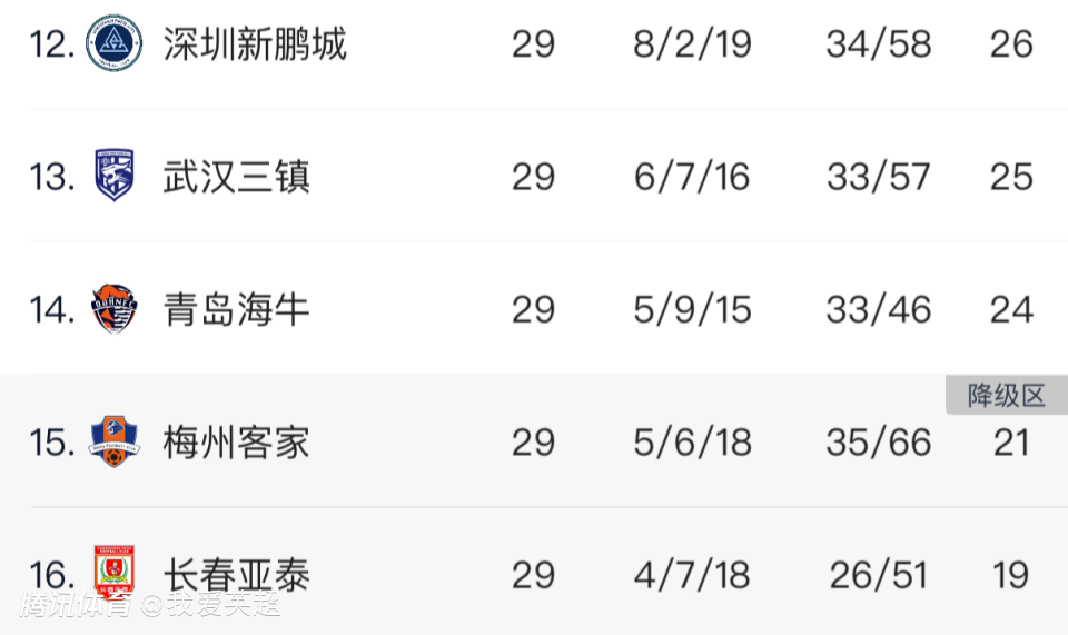 本轮过后,深圳新鹏城、武汉三镇已经提前上岸,而长春亚泰则提前降级。中超最后1个保级席位,将在青岛海牛和梅州客家之间展开。