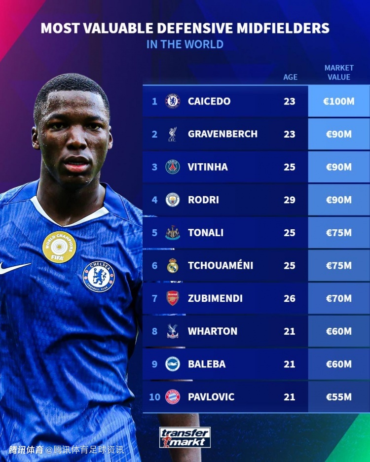 德转球员身价:防守中场凯塞多1亿居首 进攻型中场贝林厄姆1.8亿领跑
