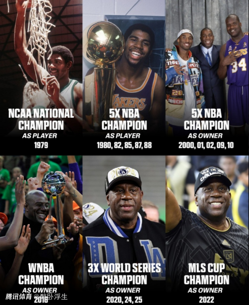 除此之外,魔术师约翰逊作为洛杉矶火花小老板夺得1冠,作为洛杉矶FC小老板夺得1冠,作为洛杉矶道奇小老板夺得3冠,堪称是人生赢家。