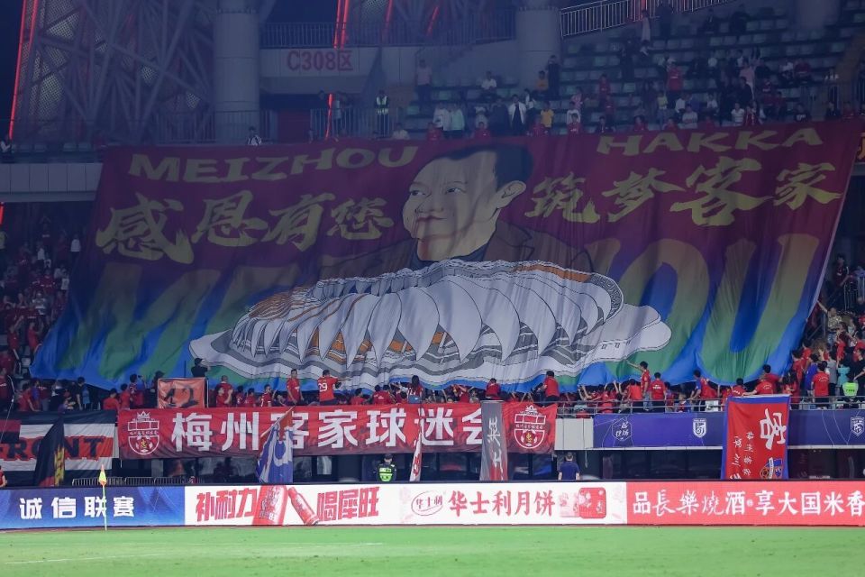 这场梅州客家本赛季中超最后的主场比赛,涌入了16000多名球迷,看台上“风雨同舟,荣耀客家”“感恩有您 ,筑梦客家”等巨型横幅陆续展开,表达了球迷们对梅州客家队的支持以及对俱乐部投资人的感谢。梅州客家每一次进攻和防守的同时,现场总会爆发激情的欢呼声和掌声。