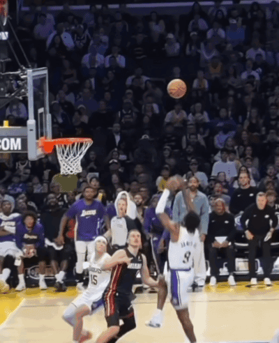 2025-11-03 11:50北京时间11月3日,NBA常规赛,湖人主场对阵热火,比赛首节,里夫斯反击送助攻,布朗尼高高跃起完成双手灌篮,拿到了赛季首分。