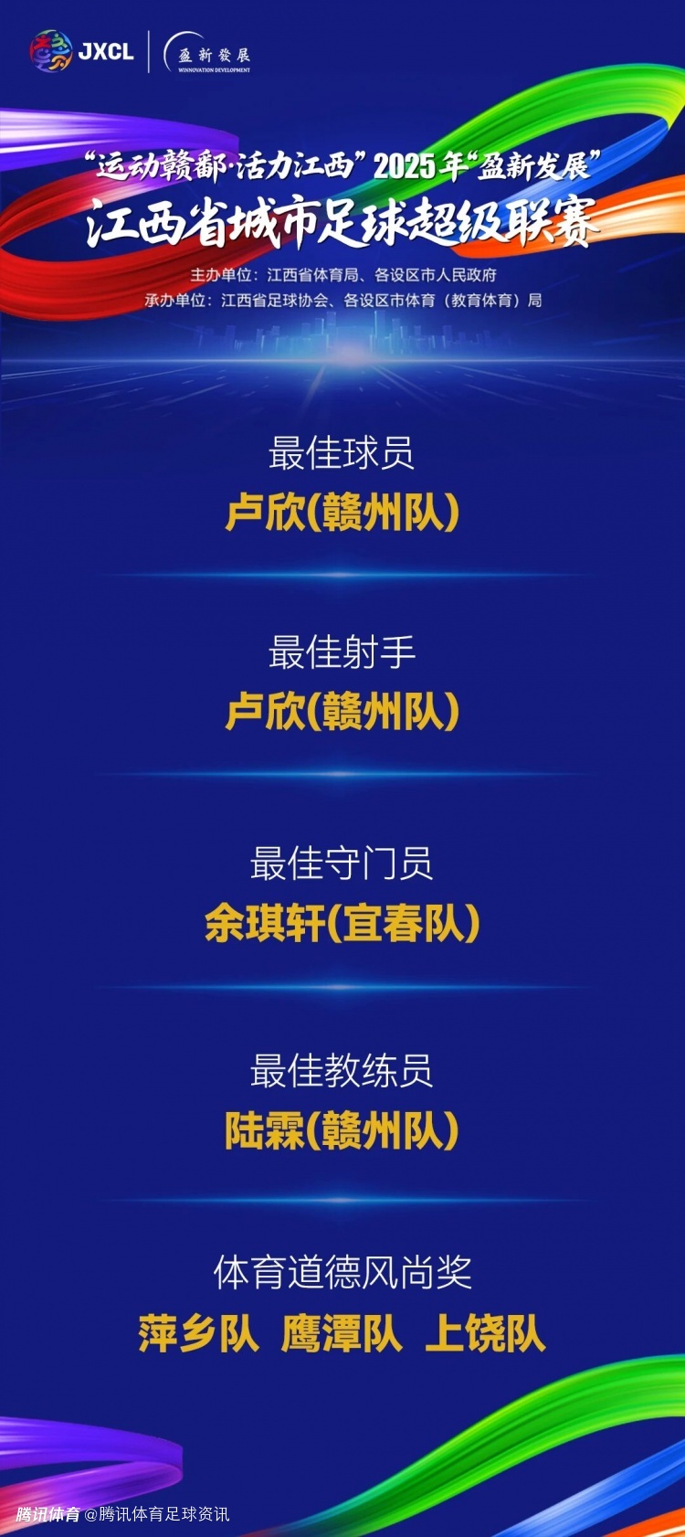 2025赣超各奖项公布:赣州包揽三项最佳 卢欣获最佳球员+金靴