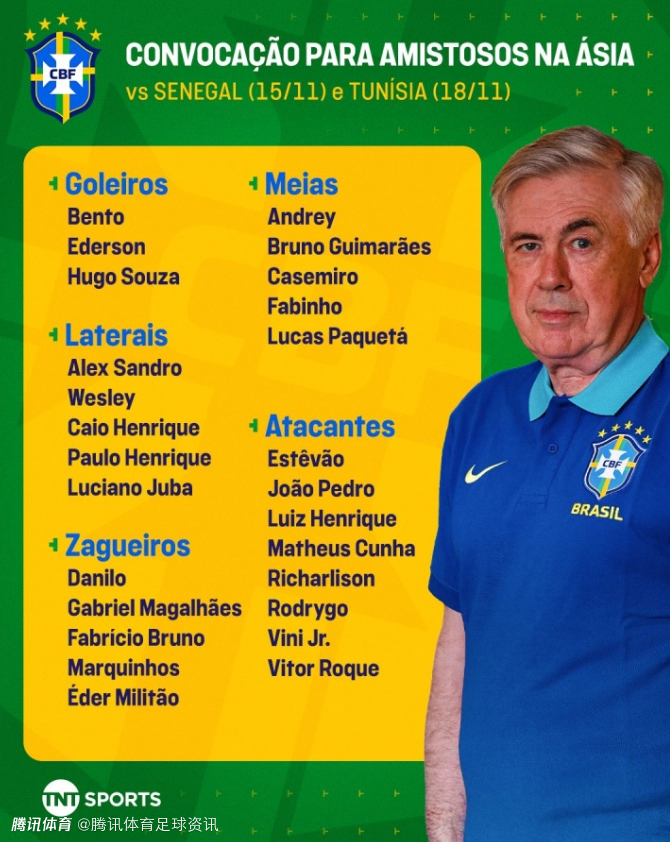 11月份国家队比赛日,巴西将迎来两场友谊赛,分别是11月16日对阵塞内加尔,以及11月19日对阵突尼斯。