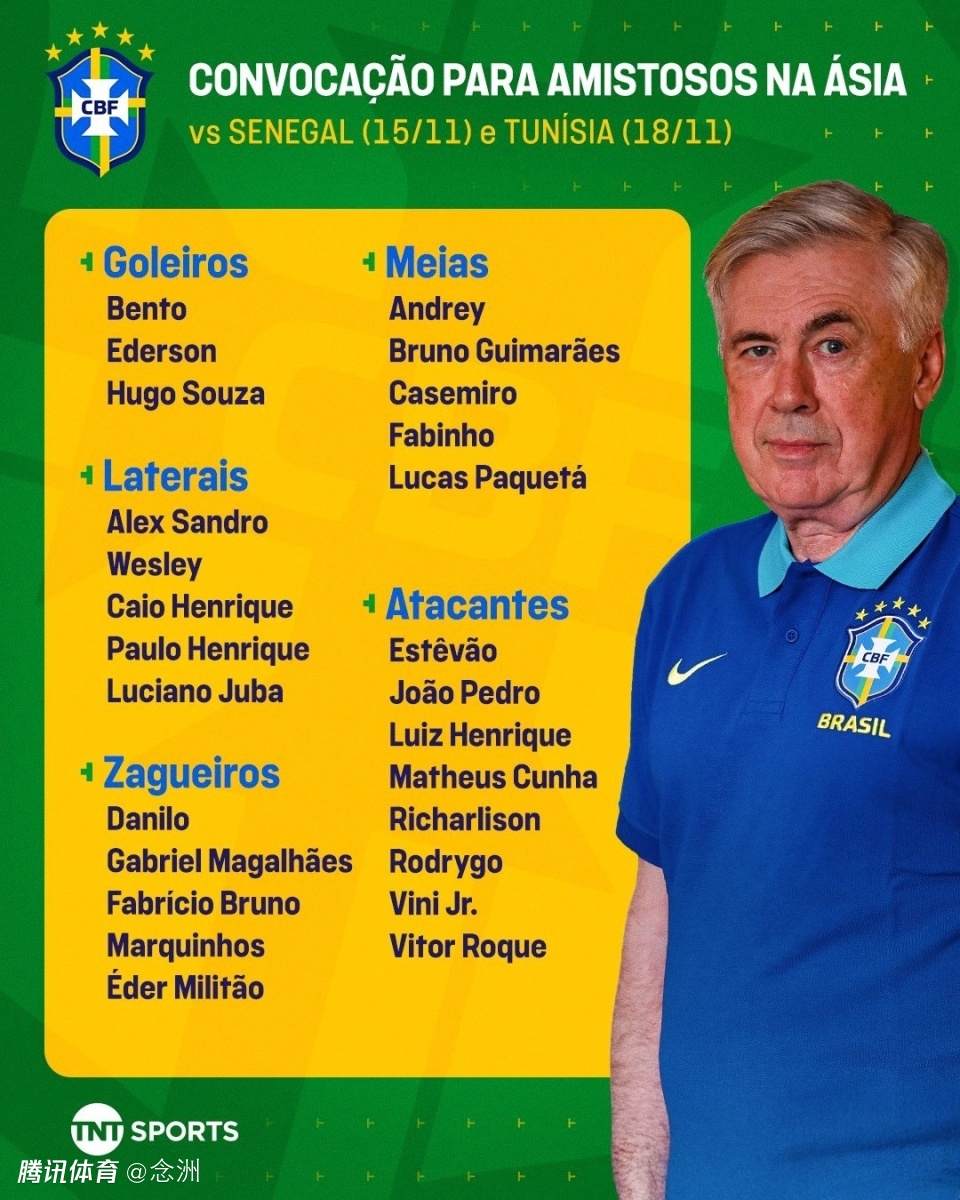 巴西国家队官方公布了新一期大名单,维尼修斯领衔,法比尼奥、罗克入选,内马尔无缘。11月份国际比赛日,巴西国家队将进行两场友谊赛,分别是对阵塞内加尔和突尼斯。