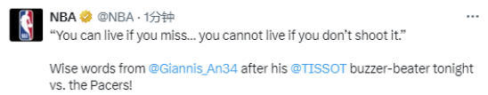 在谈到投绝杀球的心态时,字母哥说道:“要是投丢了,你大可以坦然接受;但要是连出手都不敢,那才会留下遗憾。比如我投了但没进,晚上照样能睡得着,赛后回到更衣室,我会跟队友们发信息说‘抱歉,下次我肯定进’。可如果当时没敢出手,那种遗憾才真的让人难受。我之前遇到过很多次这种情况,有时候投丢,有时候投进。大家其实不会记得你投丢的那些时刻,只会记得你投进的瞬间。所以这次能进,我也很开心。”