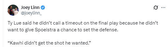 卢:最后一攻没暂停因不想让斯波布置防守 不确定小卡和比尔能否出战雷霆
