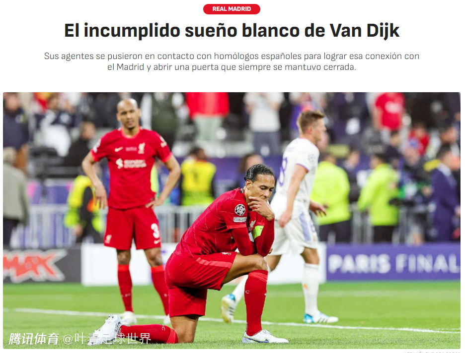 《阿斯报》指出,近些年,范戴克的利物浦和皇马多次交锋,2018年、2022年欧冠决赛,利物浦都输给皇马,无缘冠军;2021年、2023年,利物浦也在欧冠被皇马淘汰。作为利物浦队长的范戴克,希望离开英超,投奔皇马。