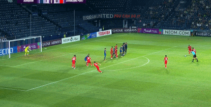 第40分钟,维塔尔主罚禁区前沿任意球,被武里南联人墙挡出。
