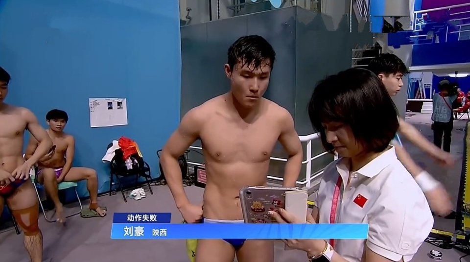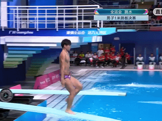 在刚刚结束的全运会男子一米板决赛里,陕西选手刘豪在第三轮第一位出场,计划完成难度3.2的305B(反身翻身两周半屈体),但走板踏跳时节奏出现问题,不得已直接放弃起跳翻腾,从板端垂直落入水中。根据规则,这个动作只能按照失败来算...实得0分。