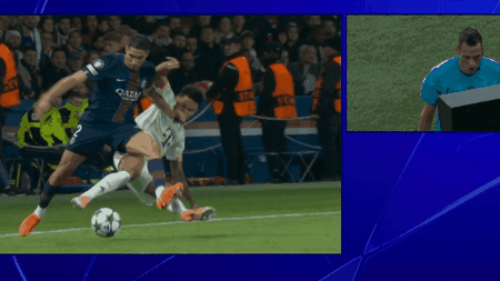 上半场补时第3分钟,路易斯·迪亚斯从背后铲倒阿什拉夫,导致后者受伤离场。经VAR提醒,主裁改黄牌为红牌,拜仁慕尼黑只剩10人应战。
