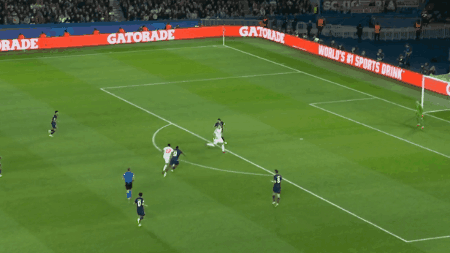 第74分钟,李刚仁右路妙传,若昂·内维斯抢点破门,巴黎圣日耳曼扳回一球。