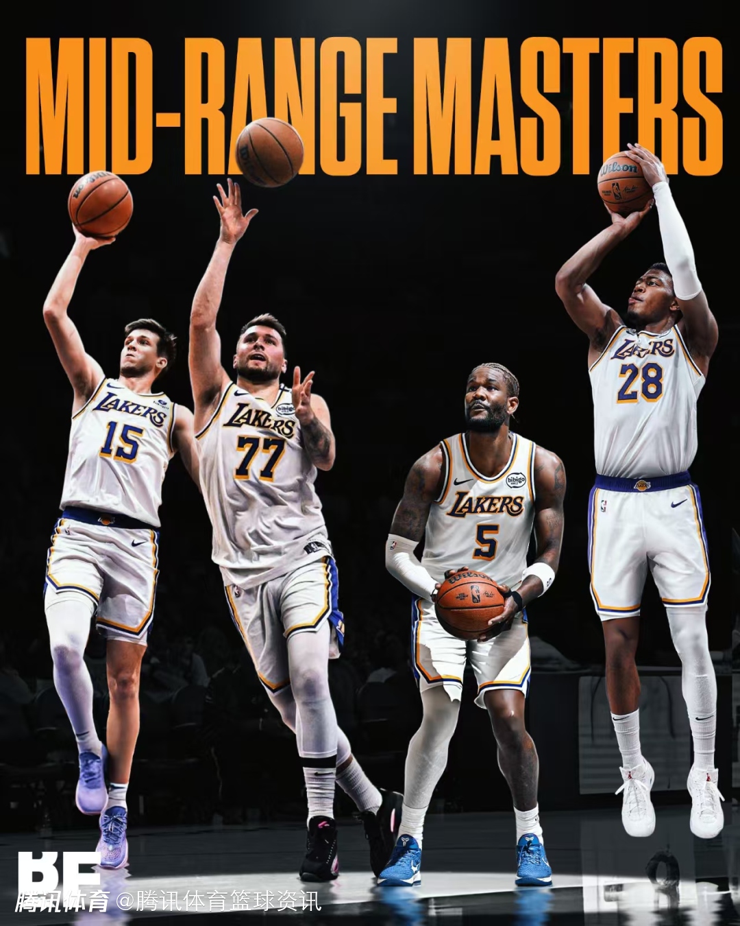 湖人四将跻身中距离命中率前10榜单:东契奇领跑 里夫斯排名第10