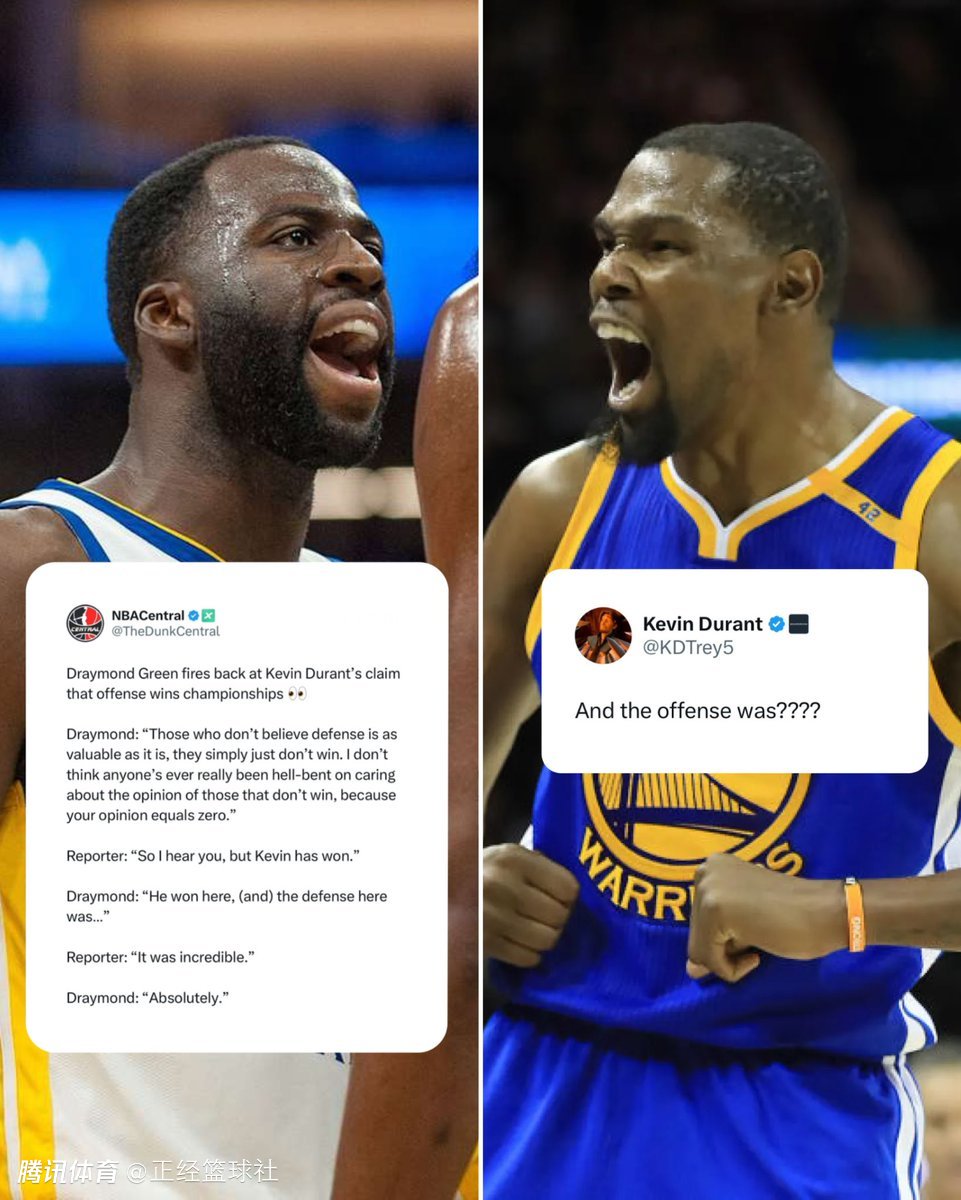 杜兰特:兄弟,进攻才能给你带来冠军(Offense wins u championships brother)。你们的问题是,当我说进攻致胜时,你们认为我是在说我讨厌防守。