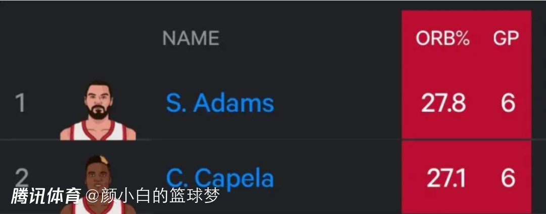 火箭的替补也很强,目前亚当斯的前场篮板率27.8%联盟第一,卡佩拉的前场篮板率27.1%联盟第二,火箭队场均14.3个前场篮板联盟第三,总篮板49.3个联盟第二,这就是火箭最擅长的投抢!