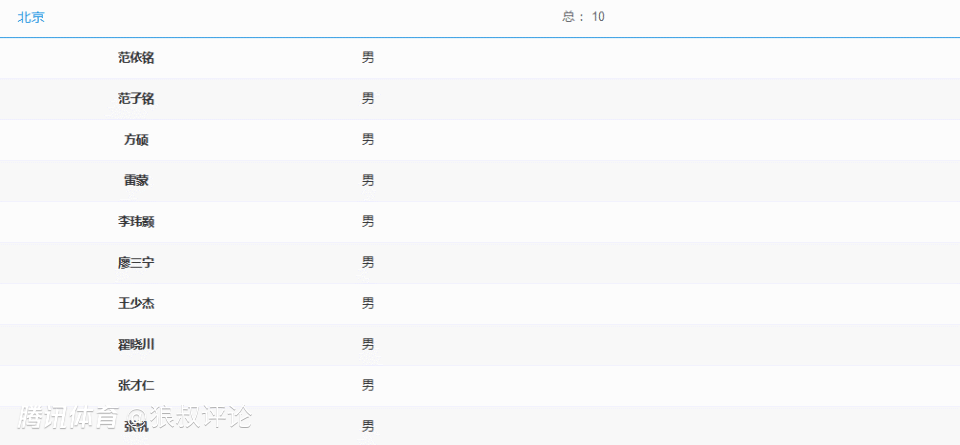 根据全运男篮官方公示,北京男篮此次只有10名队员参加决赛阶段比赛。