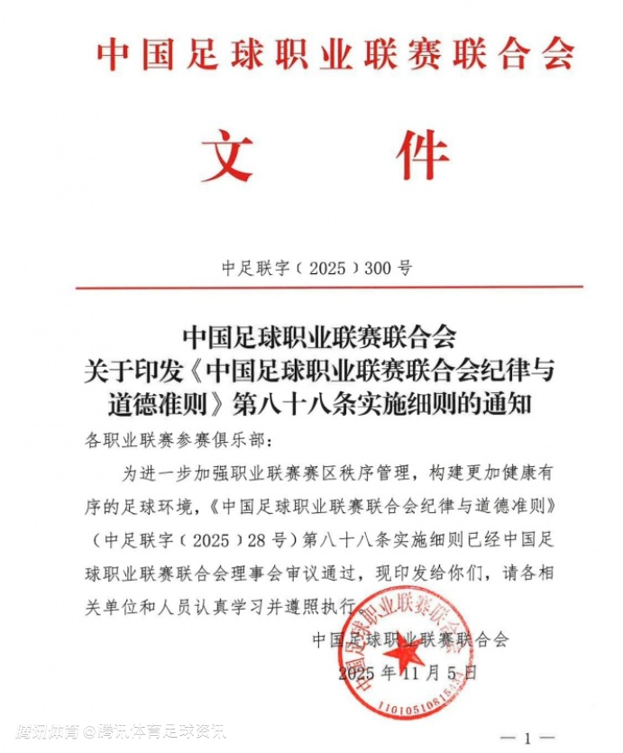 2025-11-05 13:00北京时间11月5日,中足联发布纪律与道德准则第八十八条实施细则,该细则将于2026年联赛第一场比赛之日起实施。