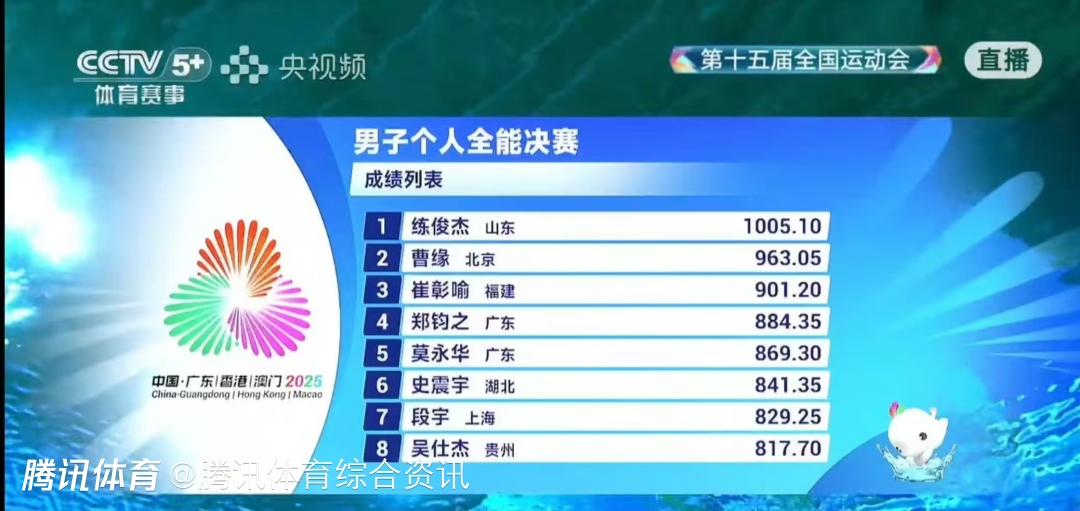北京队曹缘以963.05分获银牌,福建队崔彰喻以901.20分摘铜。
