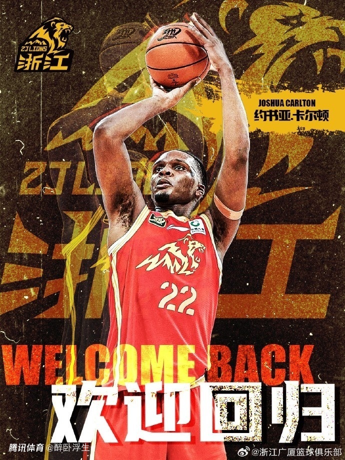 卫冕冠军广厦官宣:续约总冠军外援卡尔顿 新季助力冲2连冠
