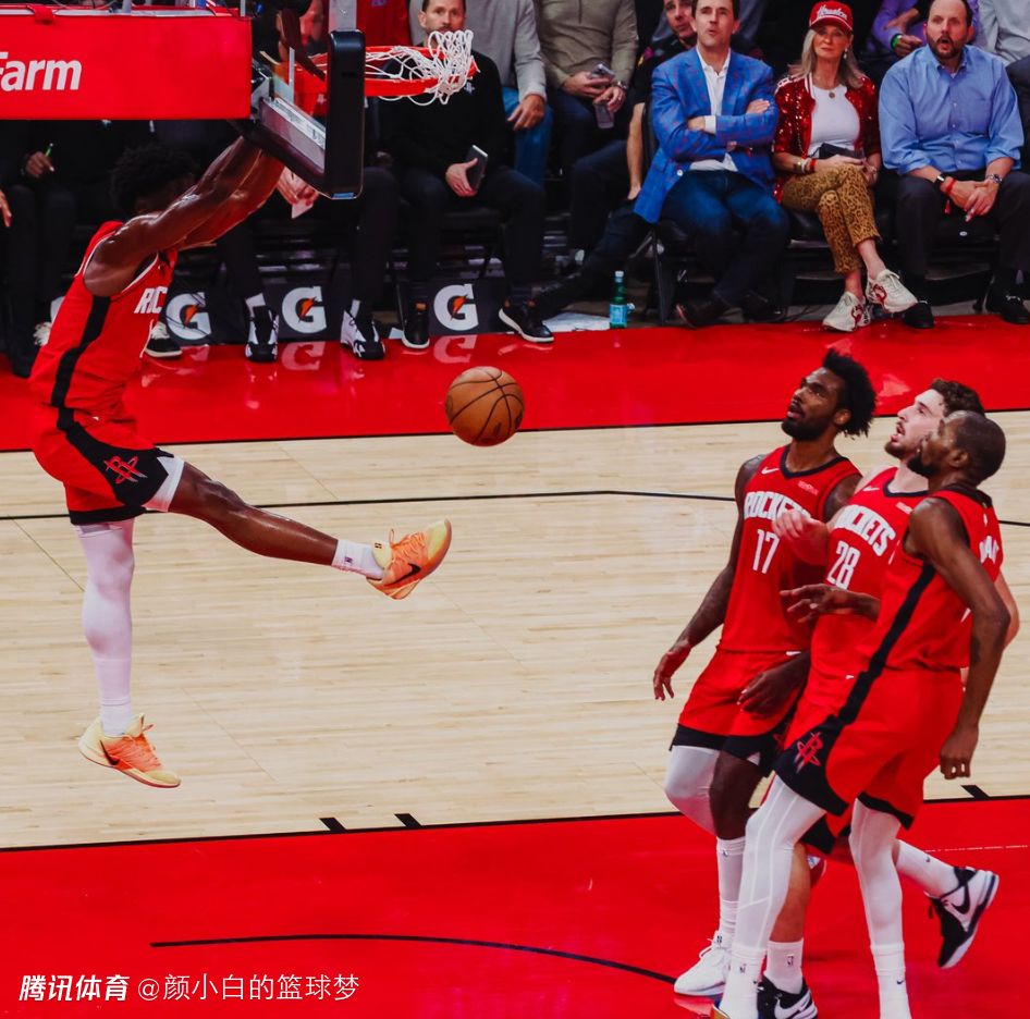 次节阿门打满了12分钟,8中4,三分1中0拿到8分4助攻3篮板1抢断,篮下有三次都是暴扣,他原本可以单节10分的,但快攻有一球他传给了手感不佳的杜兰特。半场阿门14中8拿到18分6篮板4助攻2抢断,他是火箭上半场发挥最出色的球员。