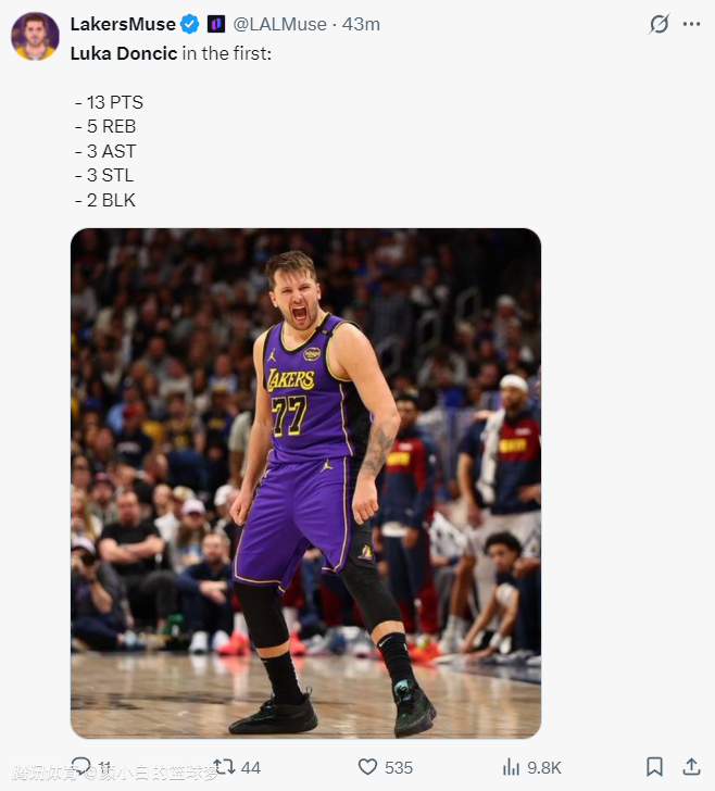 轰35+13+9+5断2帽!东契奇又刷纪录湖人五连胜 手臂肌肉更为抢眼