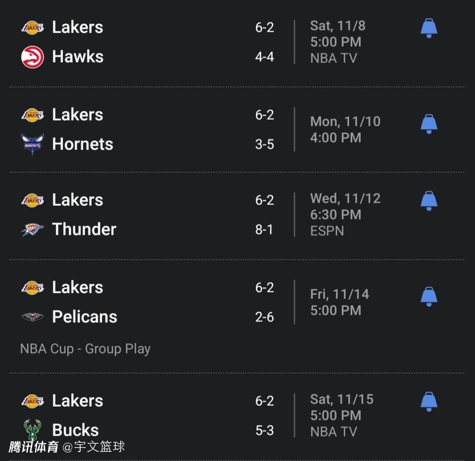 接下来湖人将开启五连客之旅,他们会先后挑战老鹰、黄蜂、雷霆、鹈鹕和雄鹿,其中鹈鹕和雄鹿为背靠背对决,这是对湖人而言的一个考验。