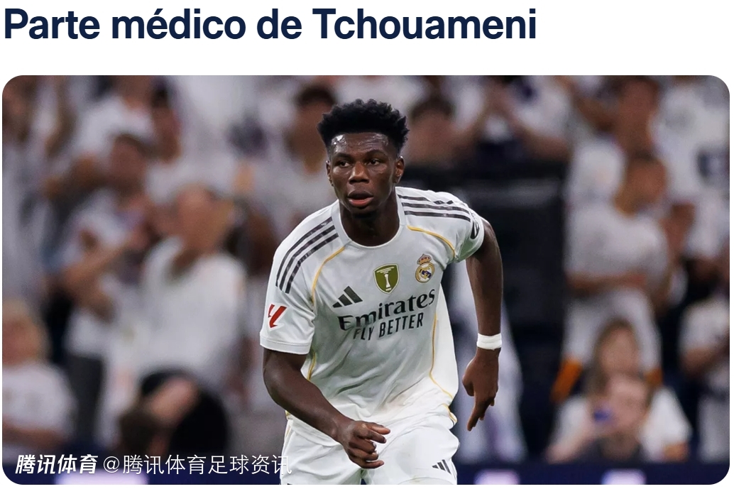 “根据皇家马德里医疗服务部门今日的检查结果,球员琼阿梅尼被诊断出左腿半腱肌受伤。他的伤情还需根据恢复情况进一步评估。”