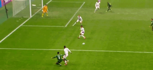 比赛的第46分钟,何宇鹏左路横传,张玉宁禁区中路右脚推射破门,1比0!