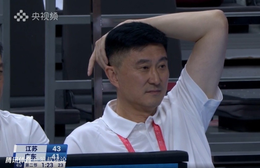 从镜头语言可以清晰看到广东全运男篮虽然本场比赛赢球了,但杜锋的心情并不好,或许与上半场一度被江苏压制落后7分存在直接的关系。