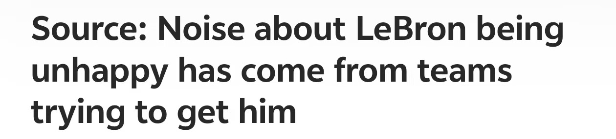 该消息人士表示,本质上,那些想要得到詹姆斯的球队一直在向记者散布“这位未来名人堂球员对湖人不满”的谣言,但这些说法毫无事实依据。