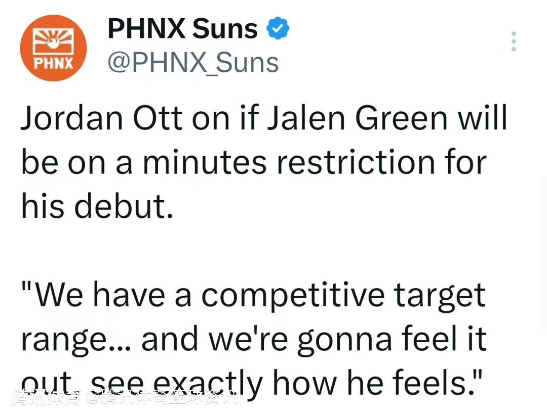 太阳主帅:杰伦-格林今日对阵快船迎赛季首秀 出场时间会灵活调整