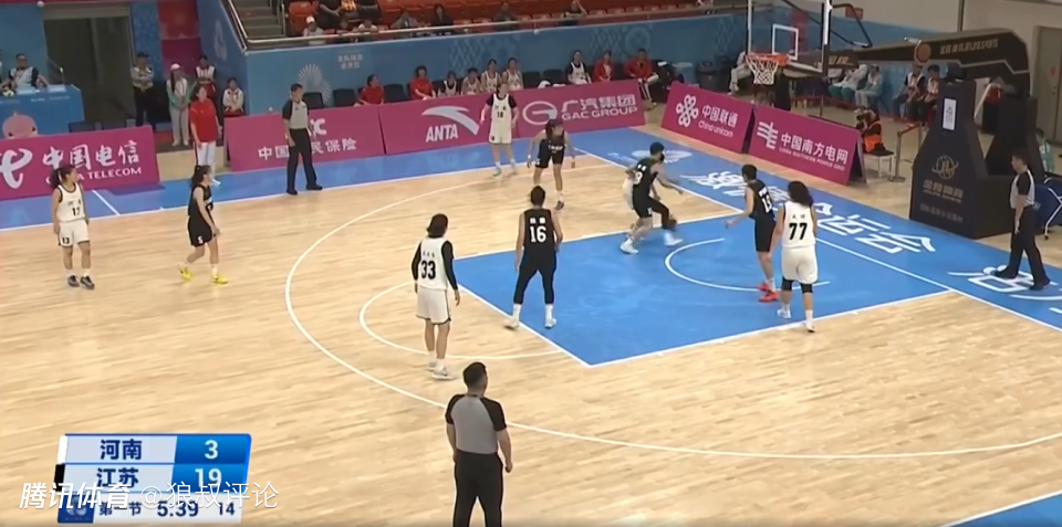 首节比赛,江苏女篮依靠凶狠的防守轰出一波21-5的攻势掌控主动权,随后的5分钟,河南依旧未能适应这种对抗尺度,许晨妍、罗欣棫继续连续得分,江苏女篮轰出一波19-2的小高潮,单节战至40-7领先33分。