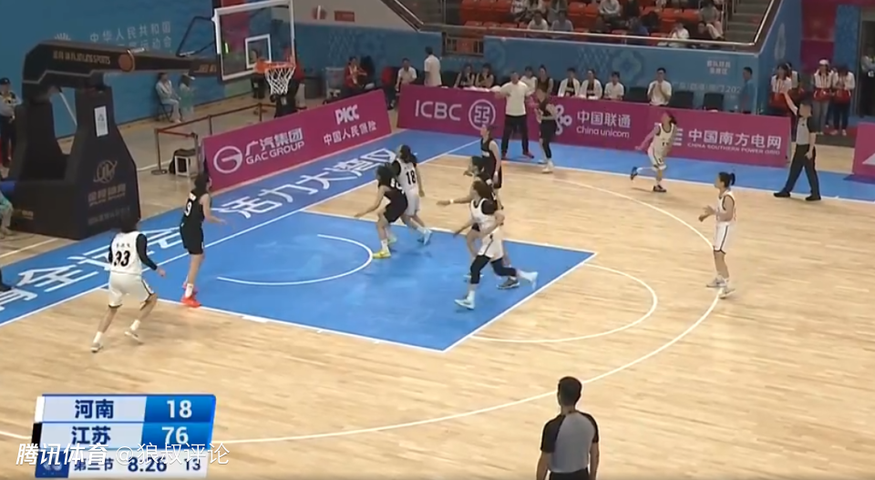 第三节,江苏女篮启用了更加边缘轮换阵容,但河南依靠班典典、李何梦丹、张玲阁得到一些分数,但整体效率并不高,江苏女篮三节已经创造接近70分的领先优势。